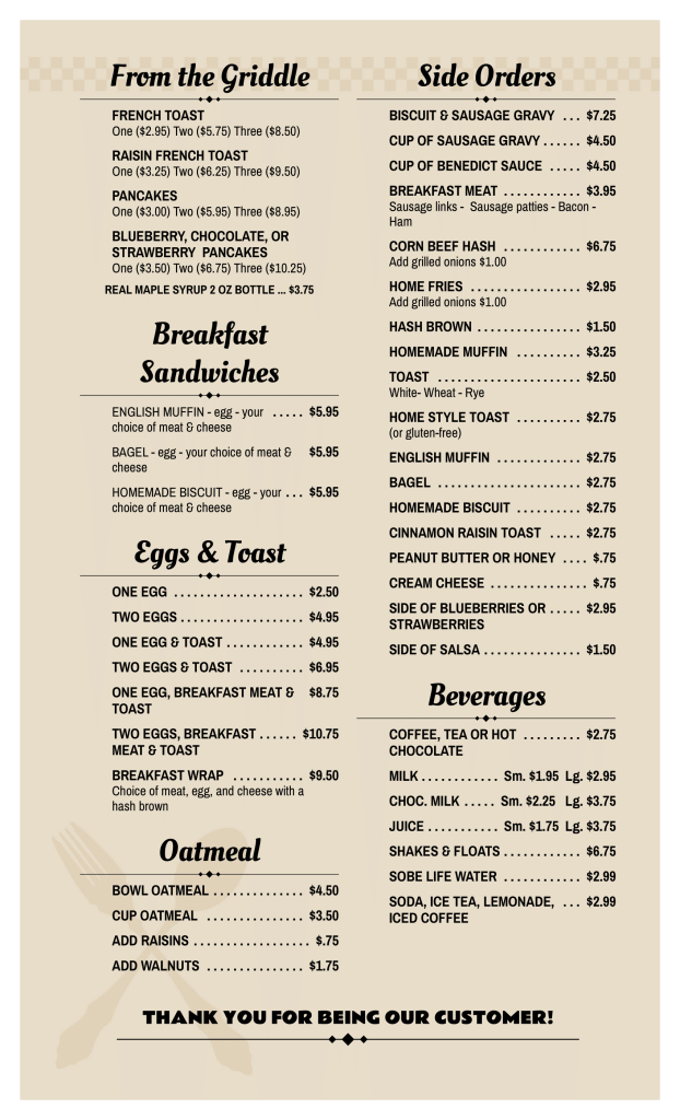Breakfast * Disclaimer: Prices, items, and menus subject to change. Accurate as of July 13th, 2025. Like Loading...